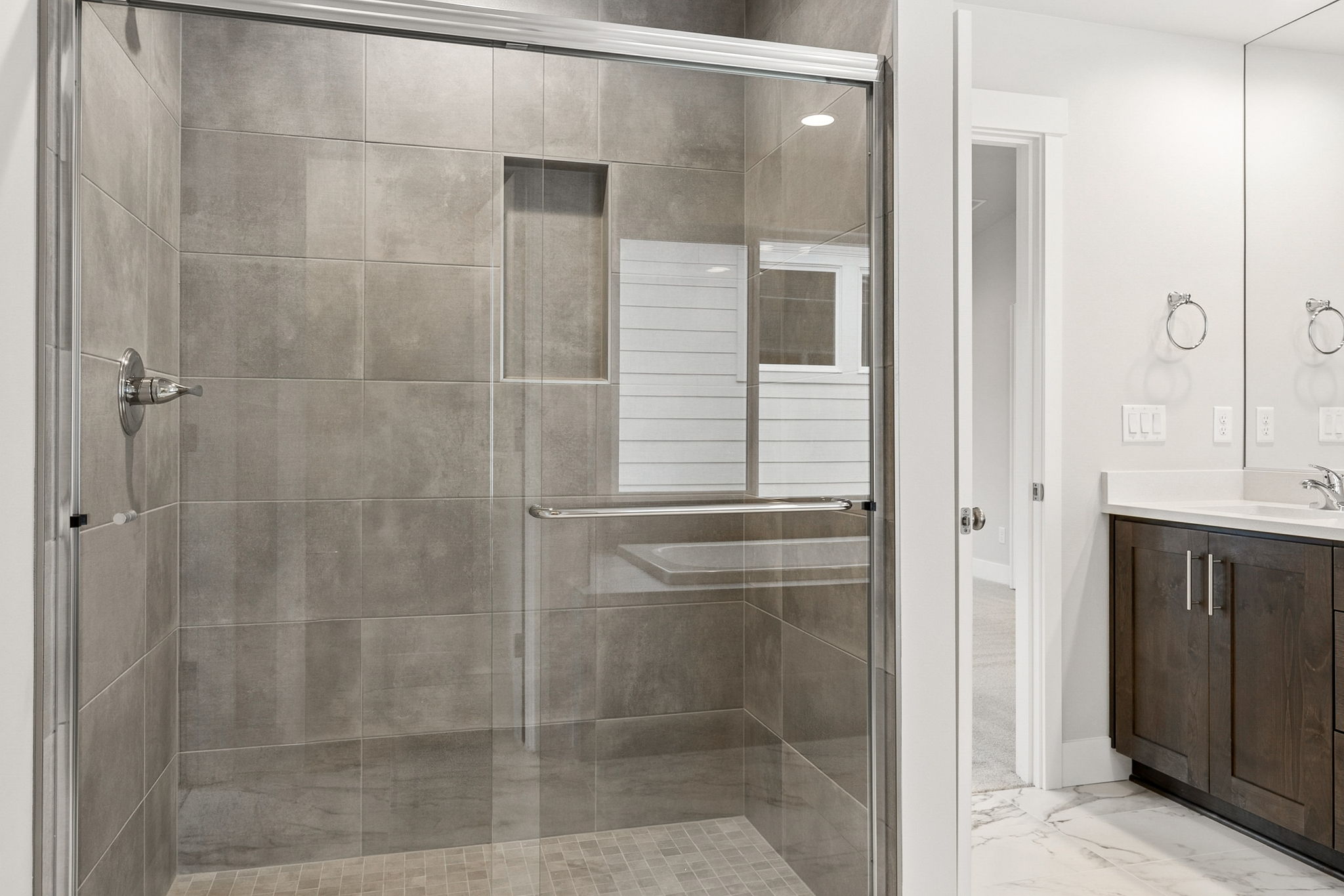 End your day in the primary suite, a sanctuary designed for ultimate relaxation, featuring a luxurious optional super mudset shower. Meanwhile, practicalities are covered with smart storage solutions, a laundry room designed for convenience, and a garage that caters to hobbies and storage needs alike.