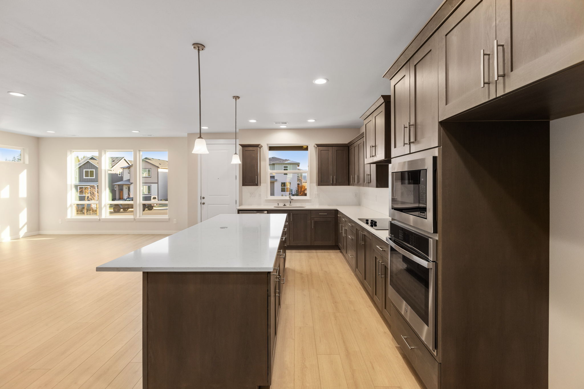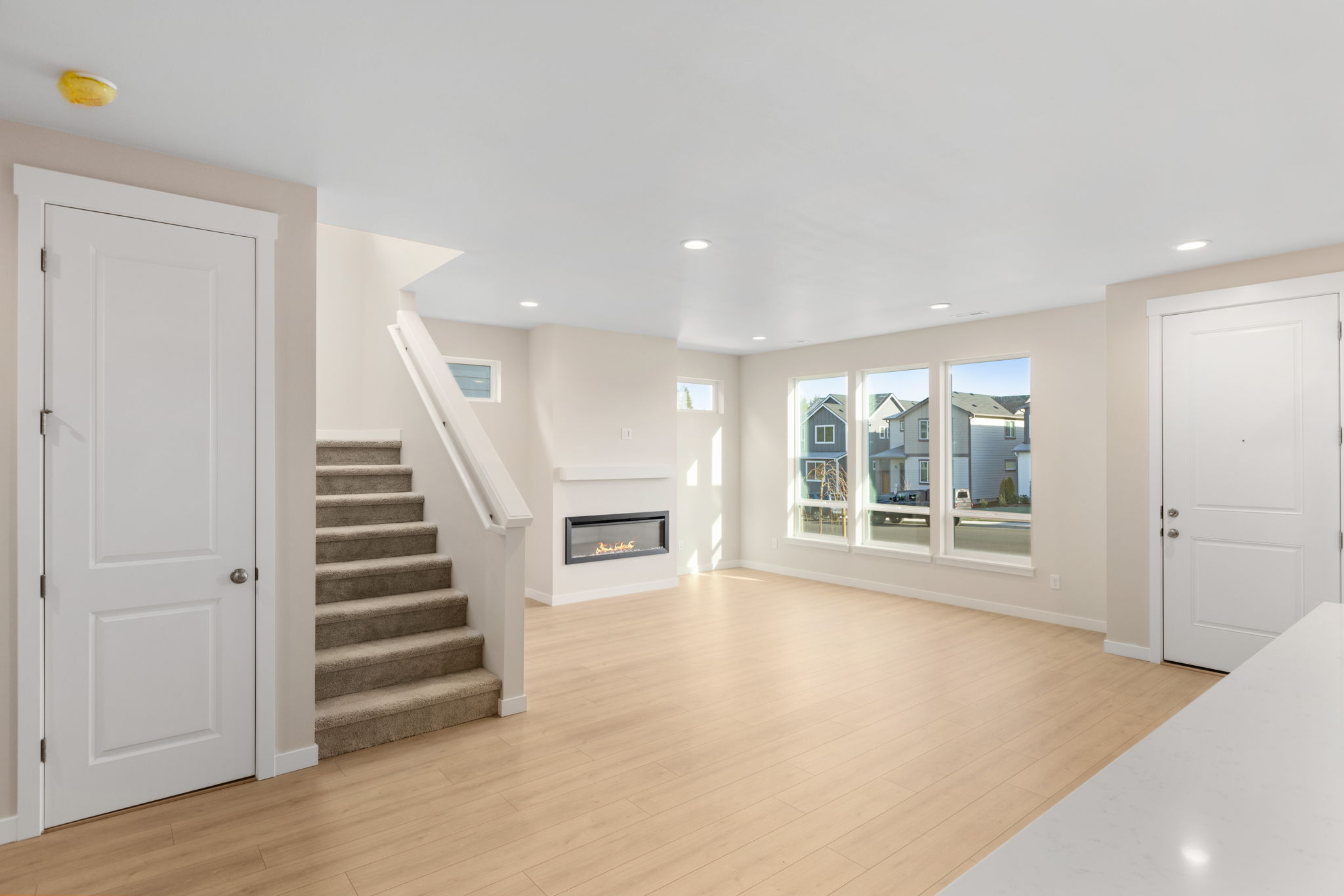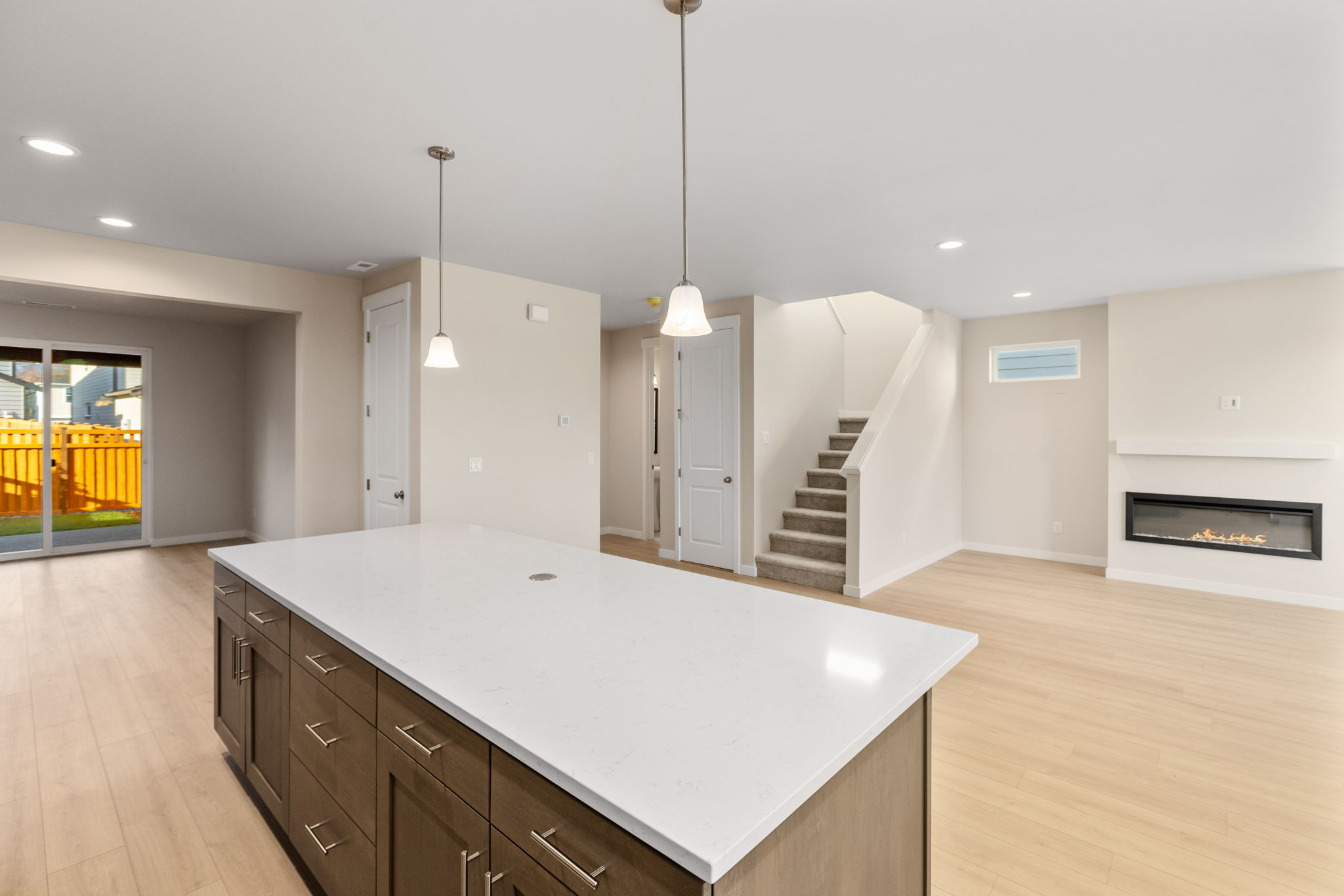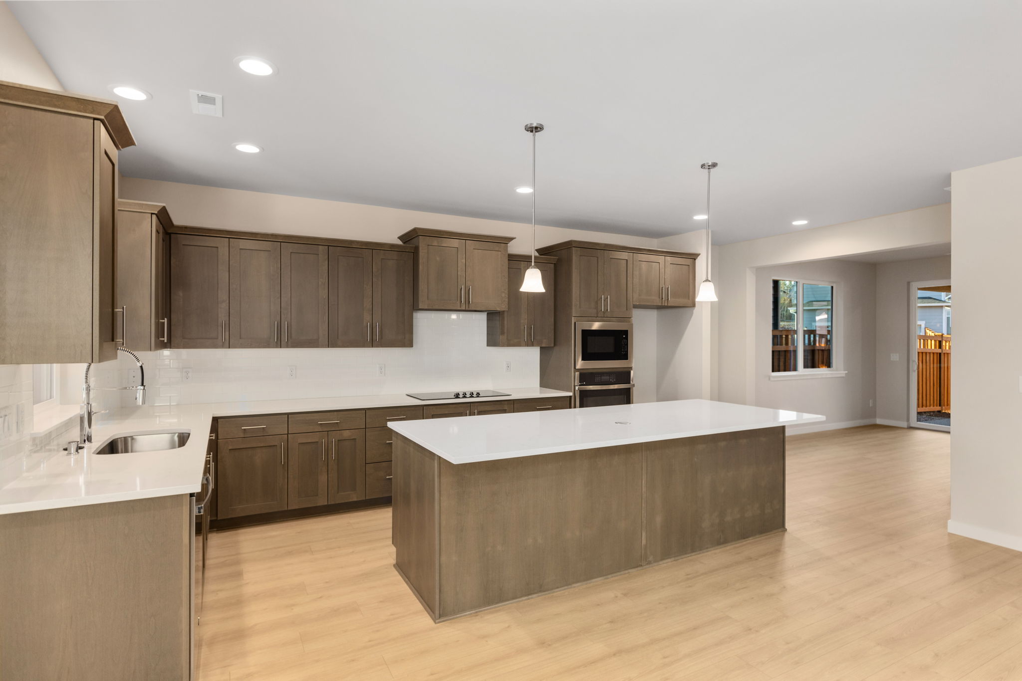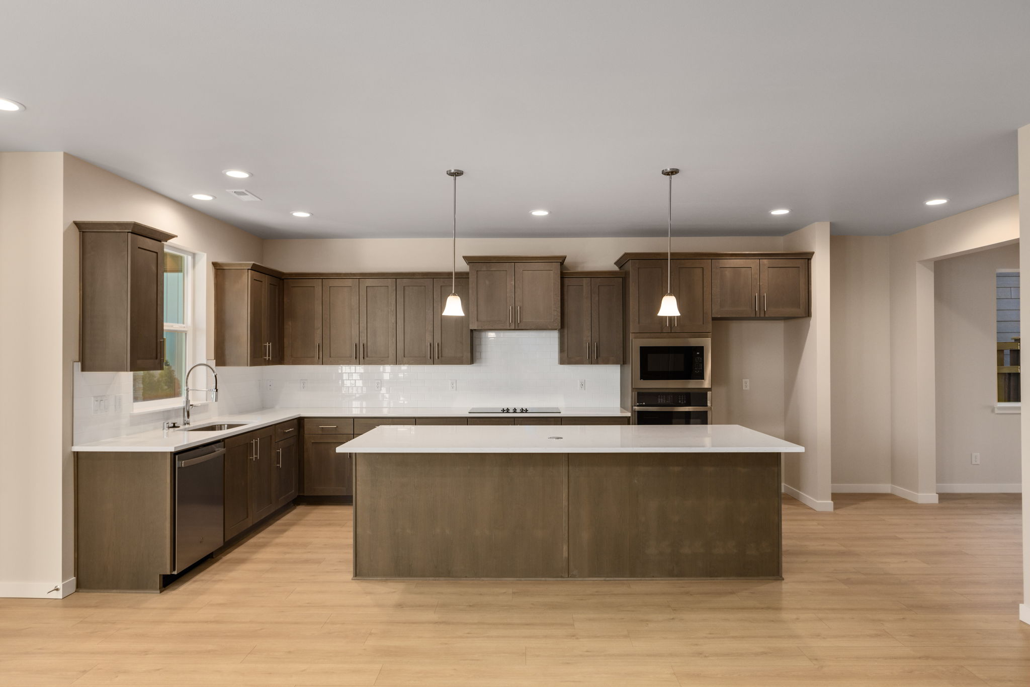 Designed to adapt to your family’s needs as you grow, a flexible space adjacent to the kitchen is ideal for creating a formal dining room or den. A slider to the covered patio invites indoor-outdoor gatherings and windows fill the room with natural light.