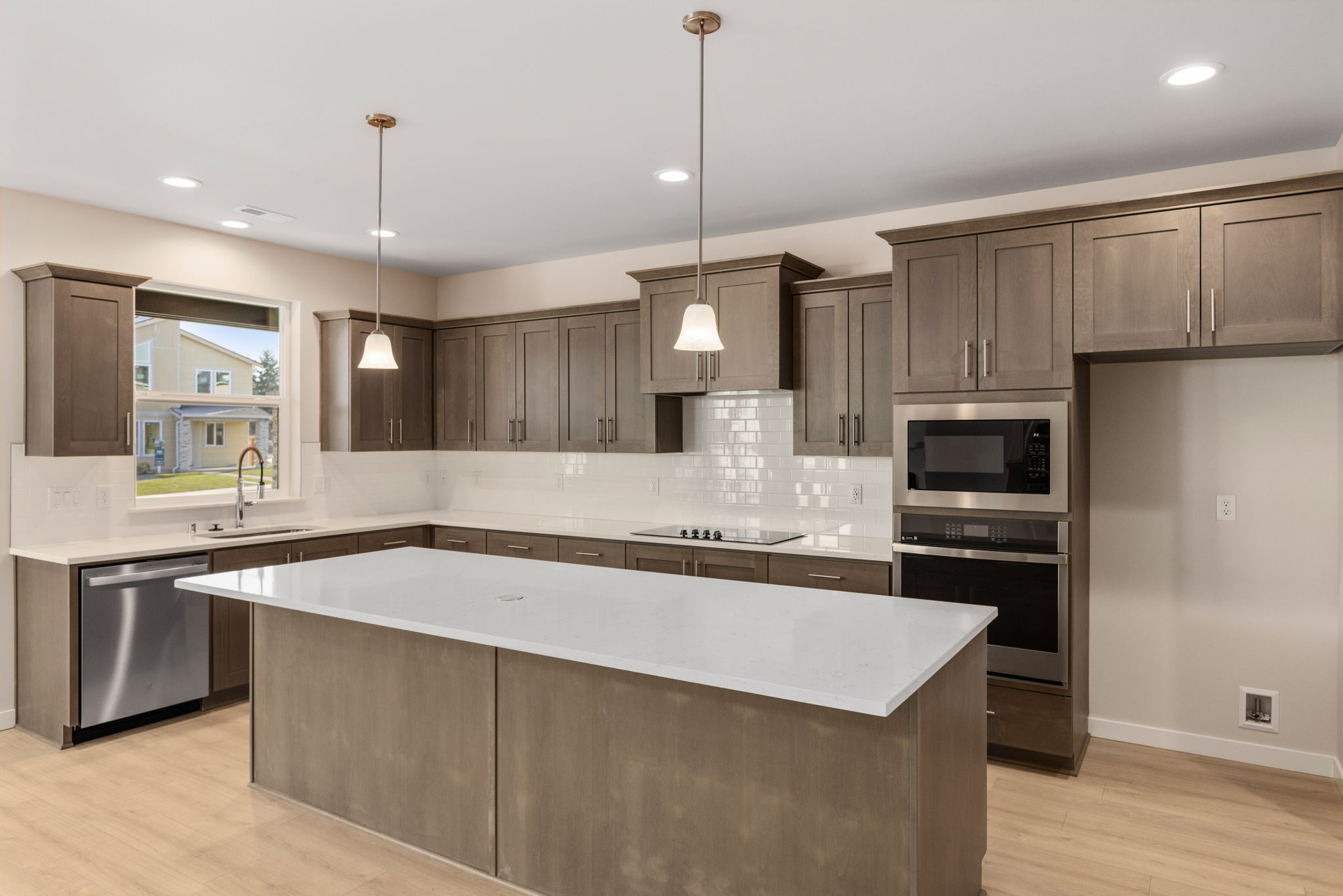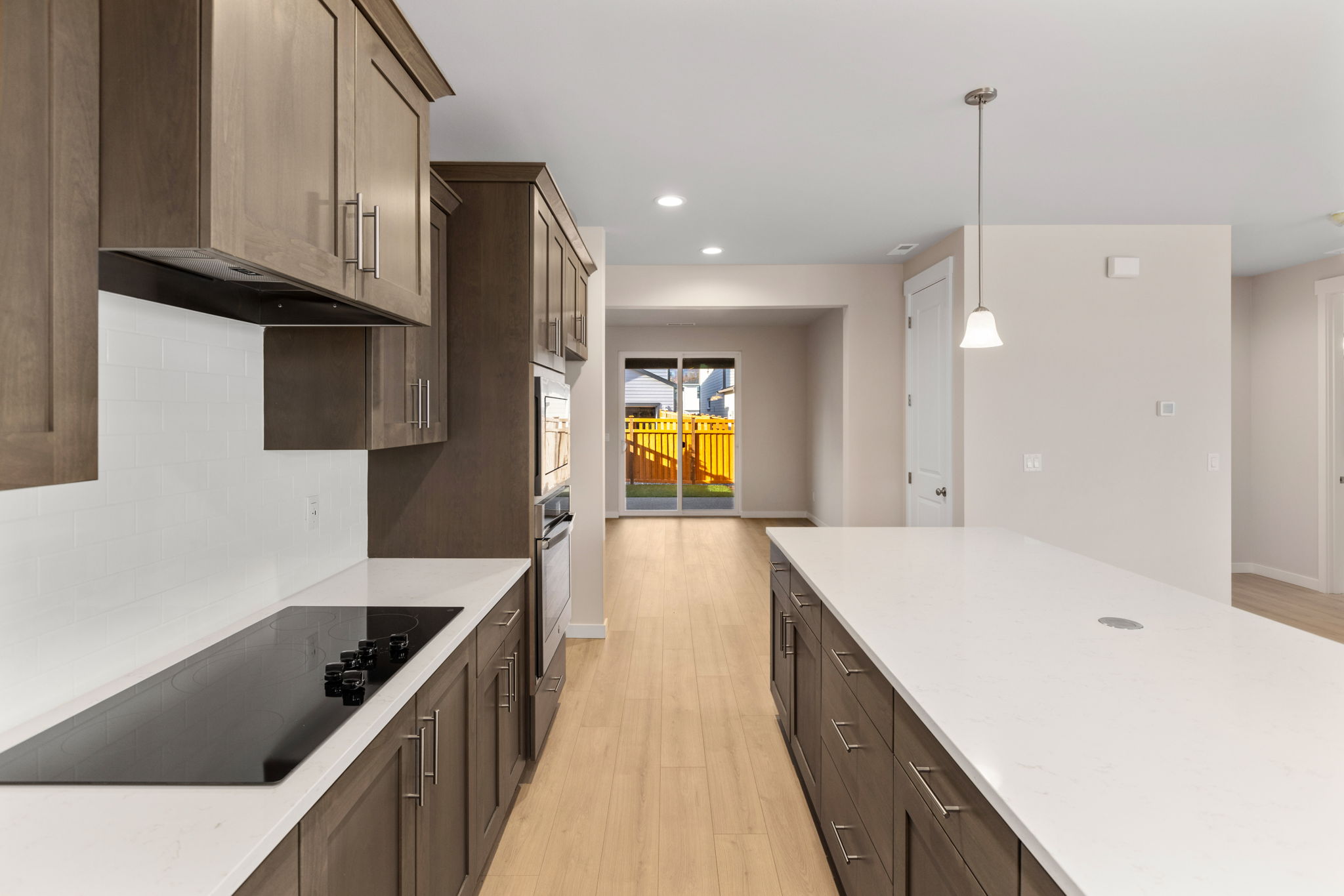 A massive island, expansive counter space, generous pantry and perfectly placed appliances makes it easy to find your flow in this beautiful kitchen. Although the great room may be inviting, everyone tends to gather in the kitchen and this layout easily accommodates a crowd. With options to upgrade, the chef in your family will find this kitchen is their new happy place.
