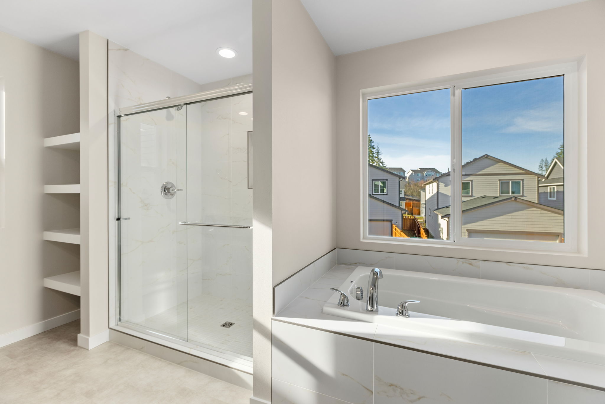 The bathroom includes partitioned walls for privacy, a dual sink that helps make a busy morning routine effortless and separate bath and shower units. Opt to upgrade the shower to a super shower with spa-like features.