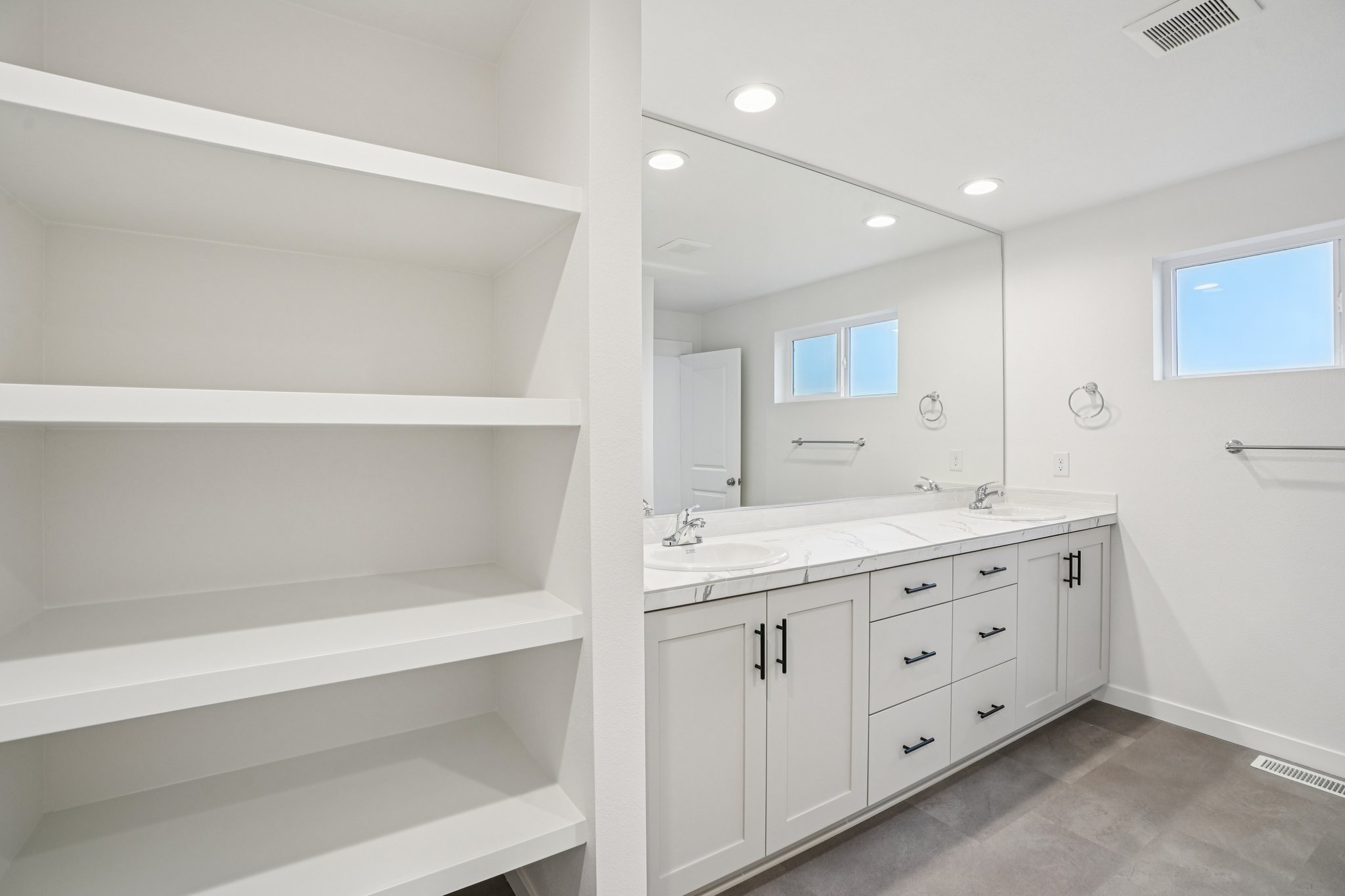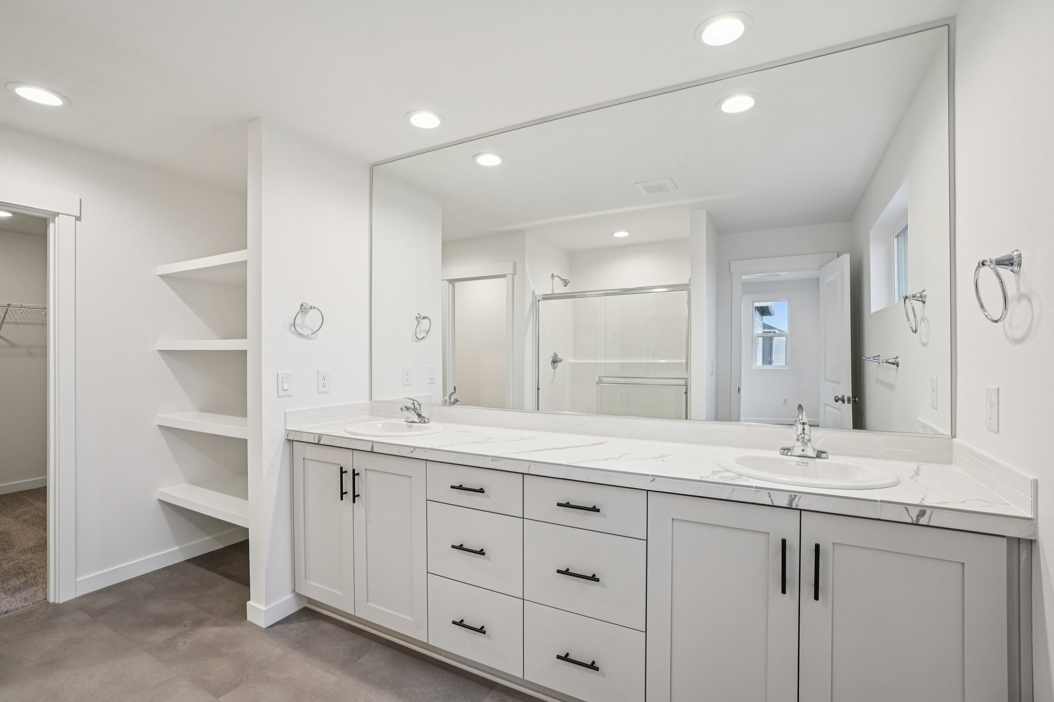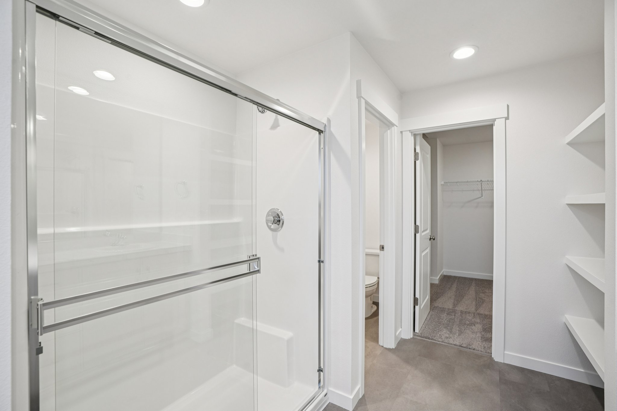 The en suite bathroom features dual sinks, open shelving and an enclosed toilet, all which help make morning routines feel effortless. A generously-sized walk-in closet is accessible via the bathroom. Be sure to ask your Holt Home Representative about taking this space from special to spa-like by adding an upgraded, free-standing bathtub!