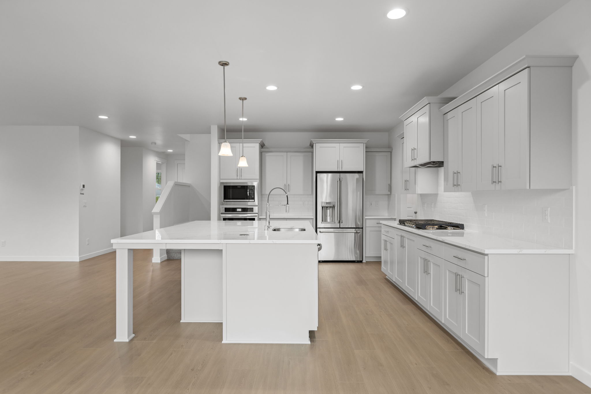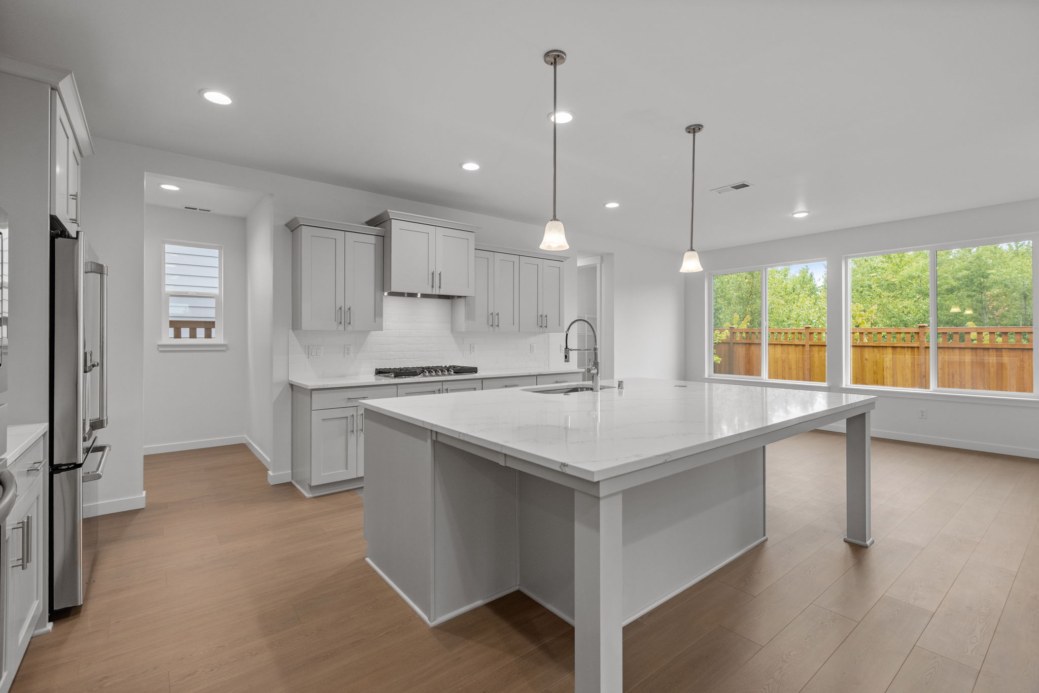 Experience a home that effortlessly blends grandeur and functionality with the 2822 Plan. On the main floor, the home welcomes you with an open-concept layout centered around a grand great room, which is perfect for gatherings with its symmetrical design, optional fireplace, and built-ins. The dine-in kitchen is designed for those who love to entertain, featuring an oversized island with wrap-around seating, an extended pantry, and optional upgrades like a gourmet kitchen or pocket office. The adjacent flex space offers versatile options for work or play, whether you choose to leave it open, add doors for privacy, or include a built-in desk for a dedicated office area. A guest suite with a full bath and walk-in closet is conveniently located on the main level, offering a comfortable space for visitors or extended family. The mudroom off the garage is a practical space to store daily essentials, with customizable options to meet your family’s needs. Outdoor living is equally impressive with a covered patio that can be upgraded with gas, plumbing, and ceiling fans, making it a perfect space for year-round enjoyment. Moving to the upper floor, you’ll find a luxurious primary suite that offers a retreat-like experience with tons of natural light and an assortment of options to fit your needs. The loft area provides additional living space, perfect for a game room or secondary family room, with the option to convert it into a fifth bedroom or study room depending on your family’s needs. Two more bedrooms, each with walk-in closets, and a functional laundry room with options for added cabinetry and a sink round out this level. With ample storage throughout, a layout designed for modern living, and a range of personalization options, the 2822 Plan is perfect for families who want a home that adapts to their lifestyle while offering an elegant and comfortable space to live and entertain.
