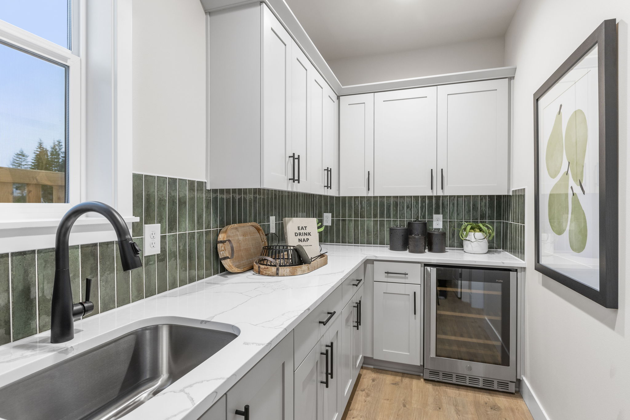 This main level also includes a true ensuite guest bedroom with a walk-in closet, providing a private space for long-term guests or family members. The mudroom, located just off the garage, is designed with Pacific Northwest homeowners in mind, offering plenty of storage and optional built-ins to keep the home tidy.