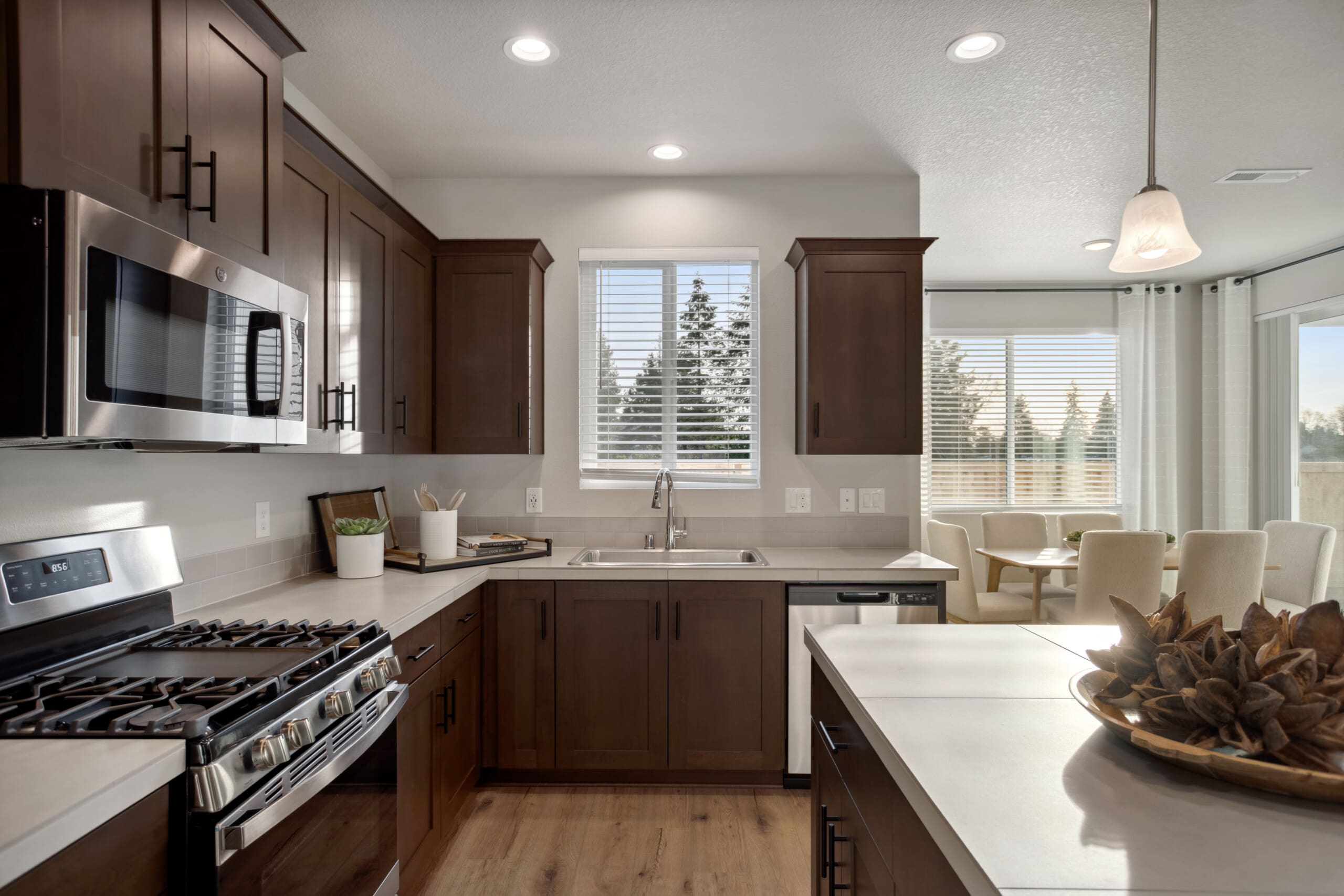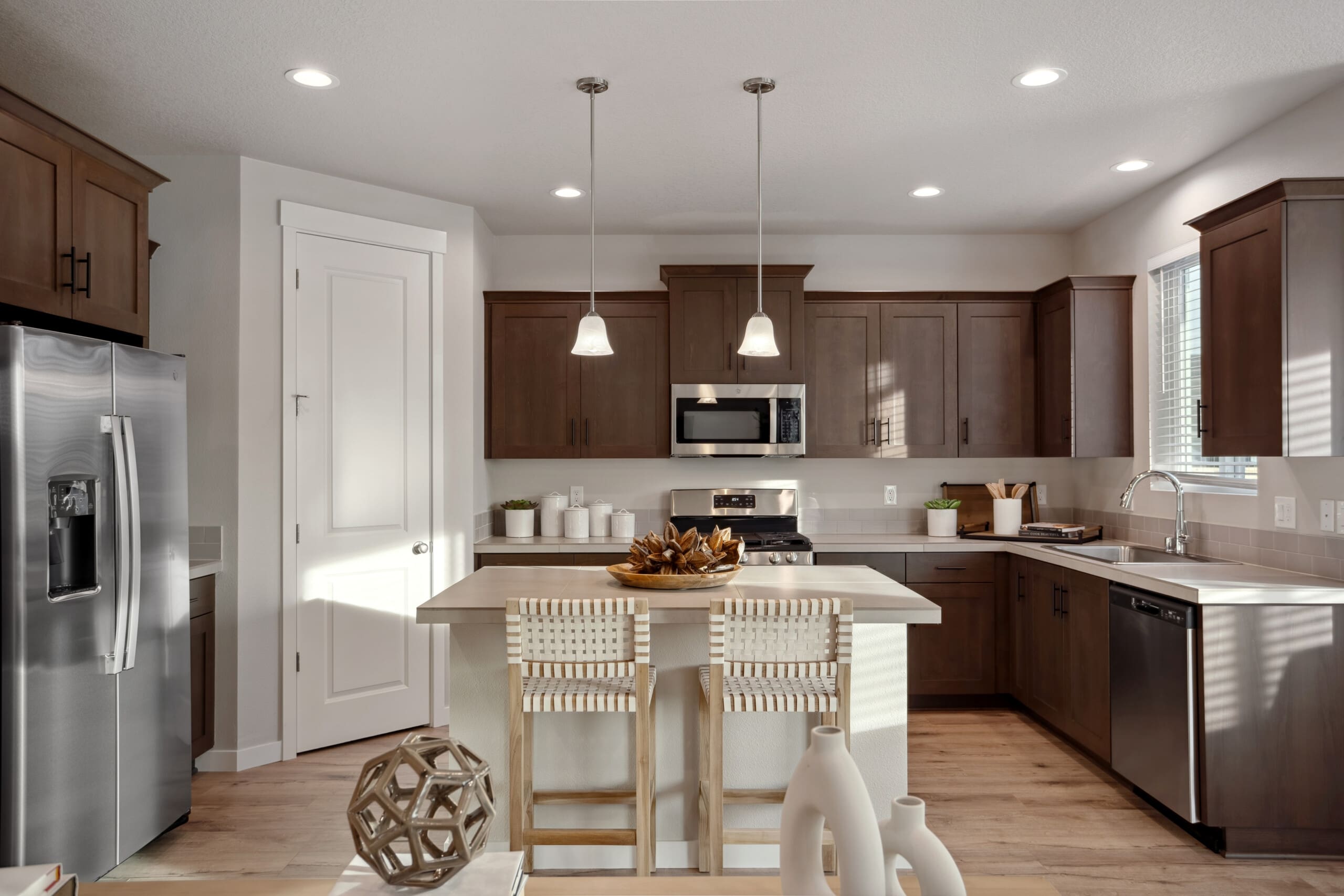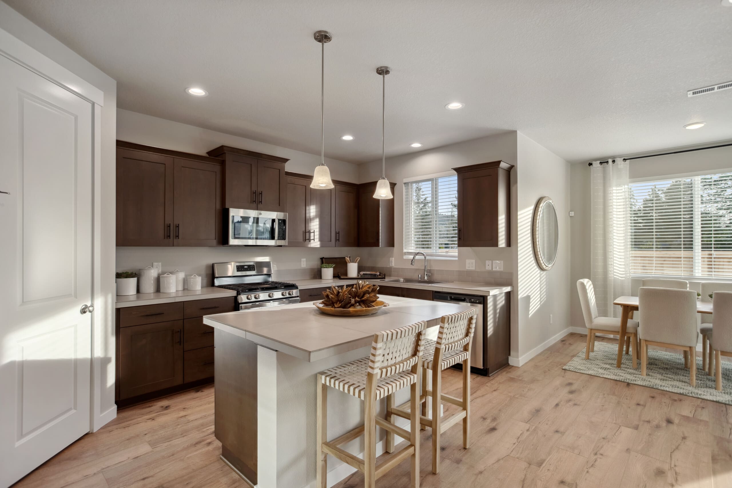 Seamlessly connected to the great room, the kitchen is both stylish and practical. A dry island maximizes counter space, with the option for a pet feeding station or bookshelf below. Extra cabinets provide ample storage, while a spacious pantry keeps essentials within easy reach.