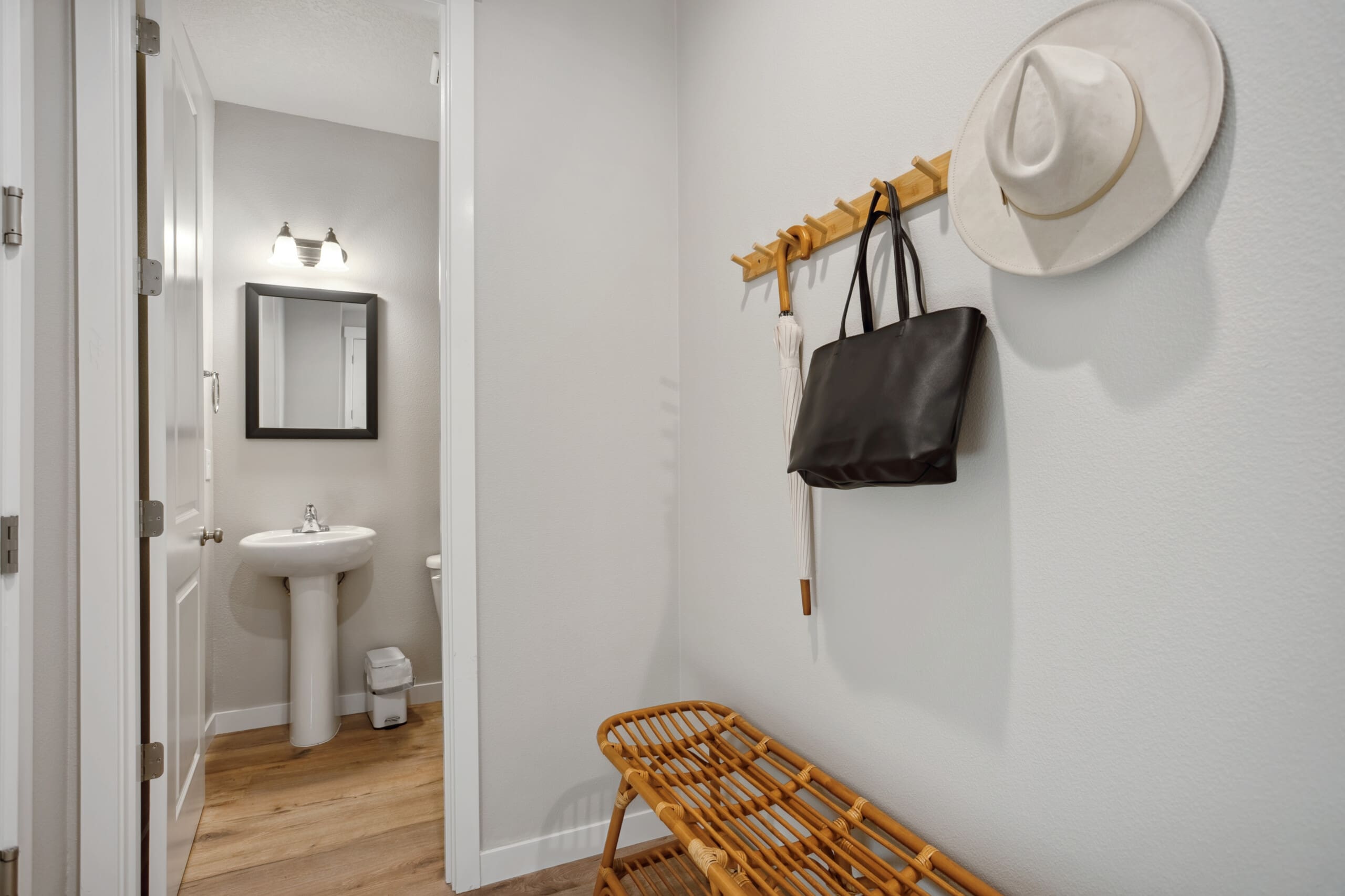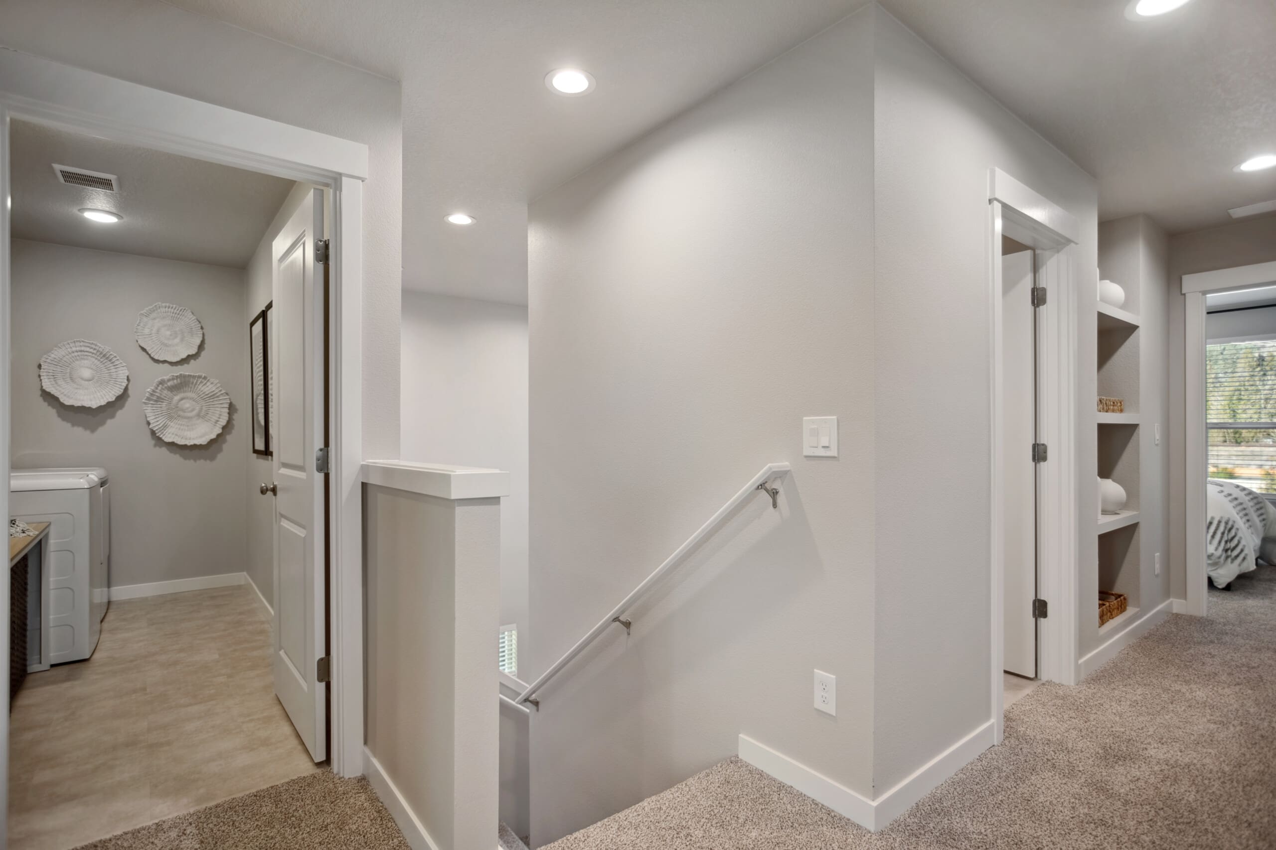 For added convenience, the washer and dryer are located down the hall, positioned away from bedroom walls to minimize noise and ensure restful nights.