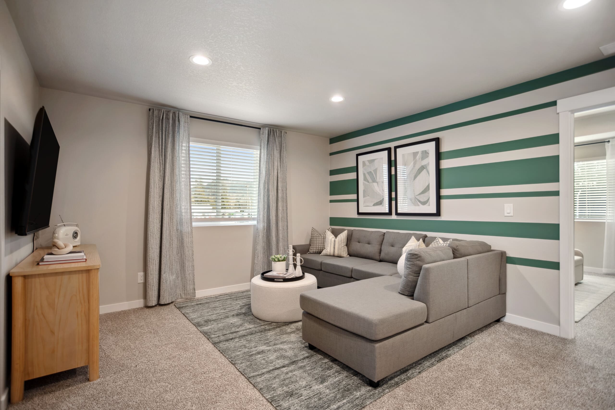 Designed for connection and relaxation, the great room features large windows that flood the space with natural light. The open layout creates an airy ambiance, while the fireplace adds warmth and charm. Whether enjoying a family movie night or hosting guests, this space adapts to your lifestyle.