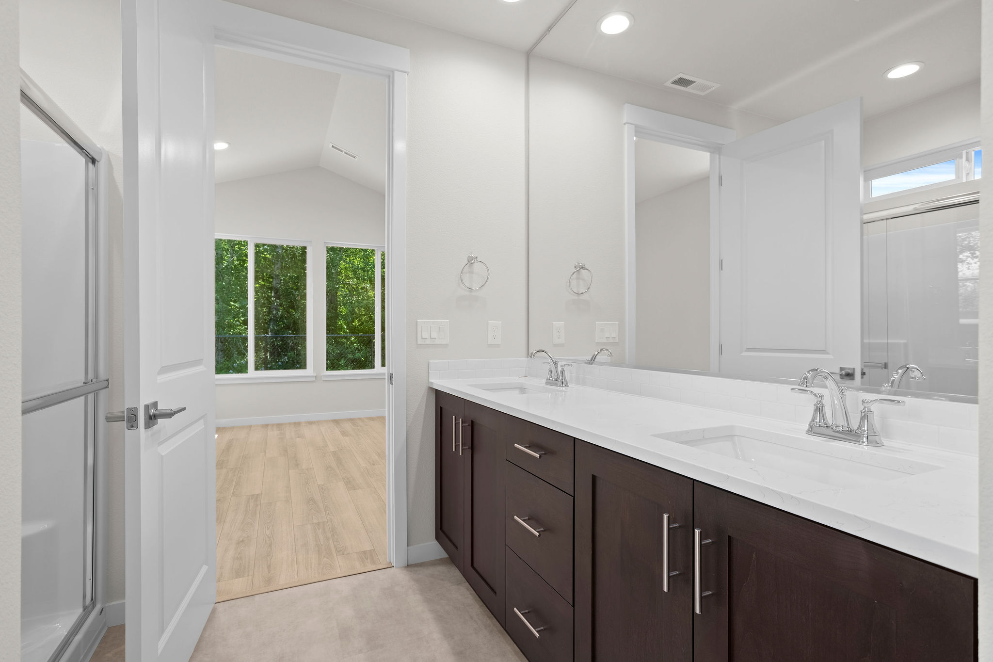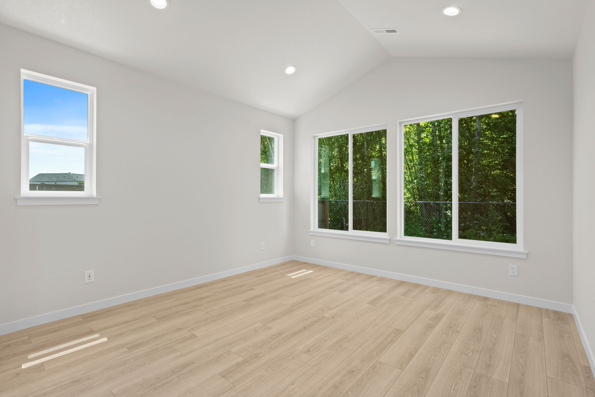 Your private primary suite is a peaceful retreat, featuring vaulted ceilings, a walk-in closet, and a bright, airy bathroom with optional upgrades like a tiled shower or barn door entry. Add an optional retreat space with large windows, perfect for a cozy reading nook.