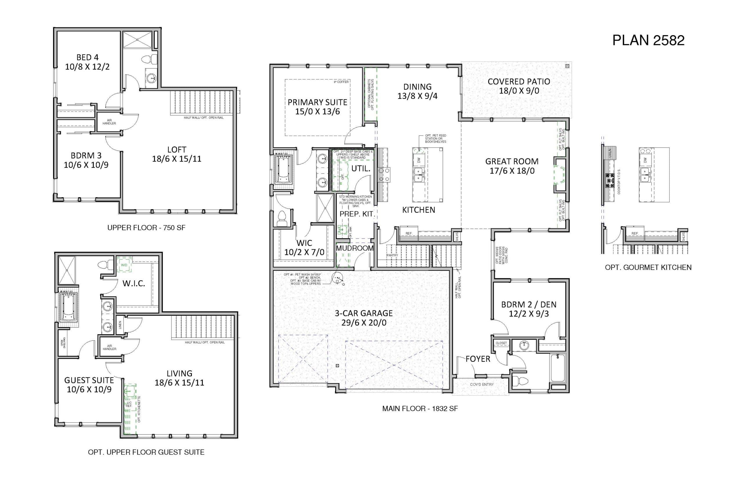 - Optional Upper-Floor Guest Suite – Includes bath, kitchenette, and walk-in closet for added flexibility.