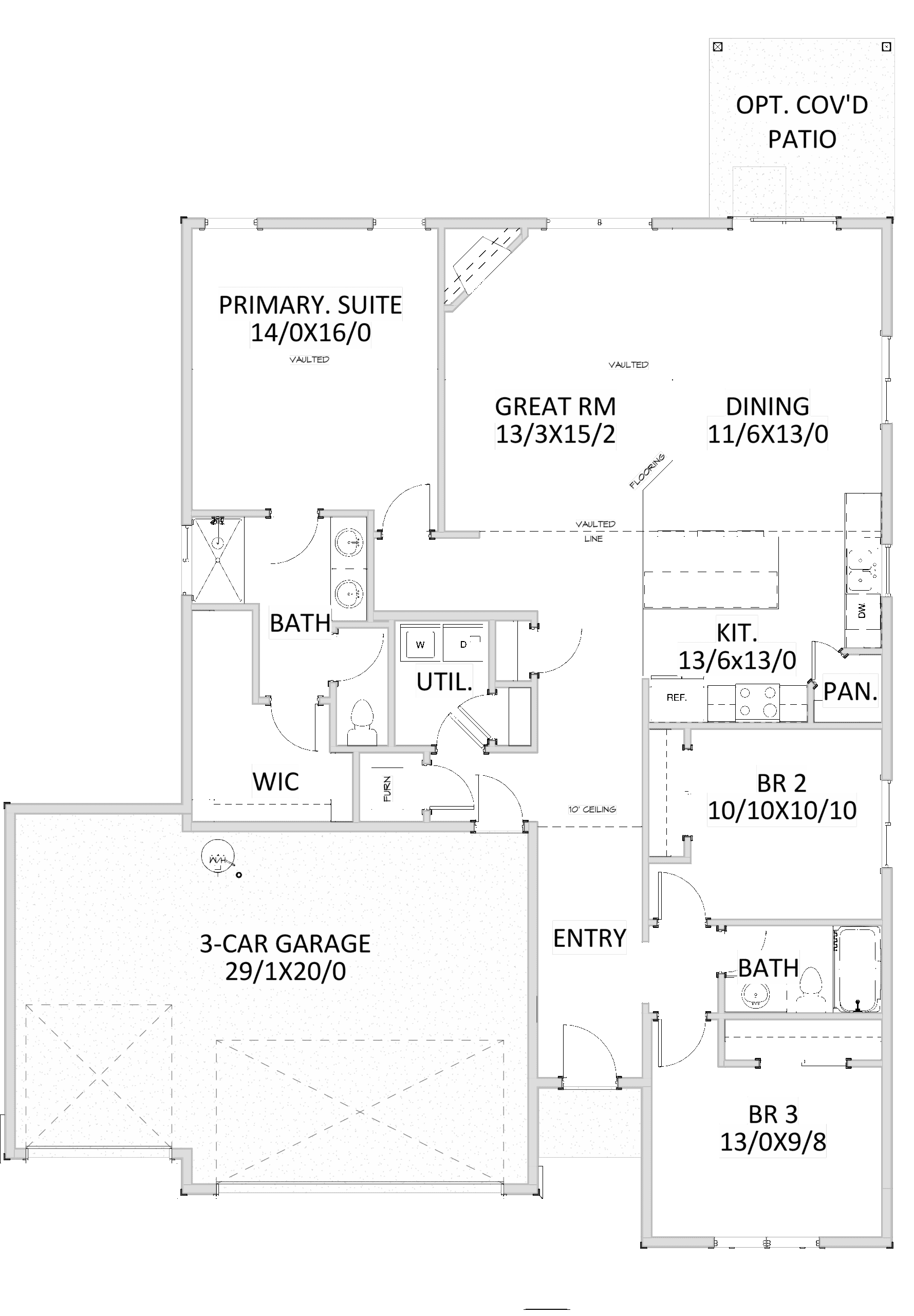 All the convenience of main level living is yours, with a vaulted master suite featuring a full size walk in closet and double sinks, standup shower and private toilet. Enjoy leisurely mornings in the dining room, located just off the kitchen for a quiet spot alone or room to share. The standard natural gas furnace will keep the whole family warm in the winter, while the optional gas fireplace will bring a welcoming mood any time of day. Homeowners are sure to love having two extra bedrooms, laundry and a walk-in pantry all on one level, plus lots of natural light from all the windows Holt provides as a standard. Value, quality and livability at an affordable price is found in this home from Holt Homes.*