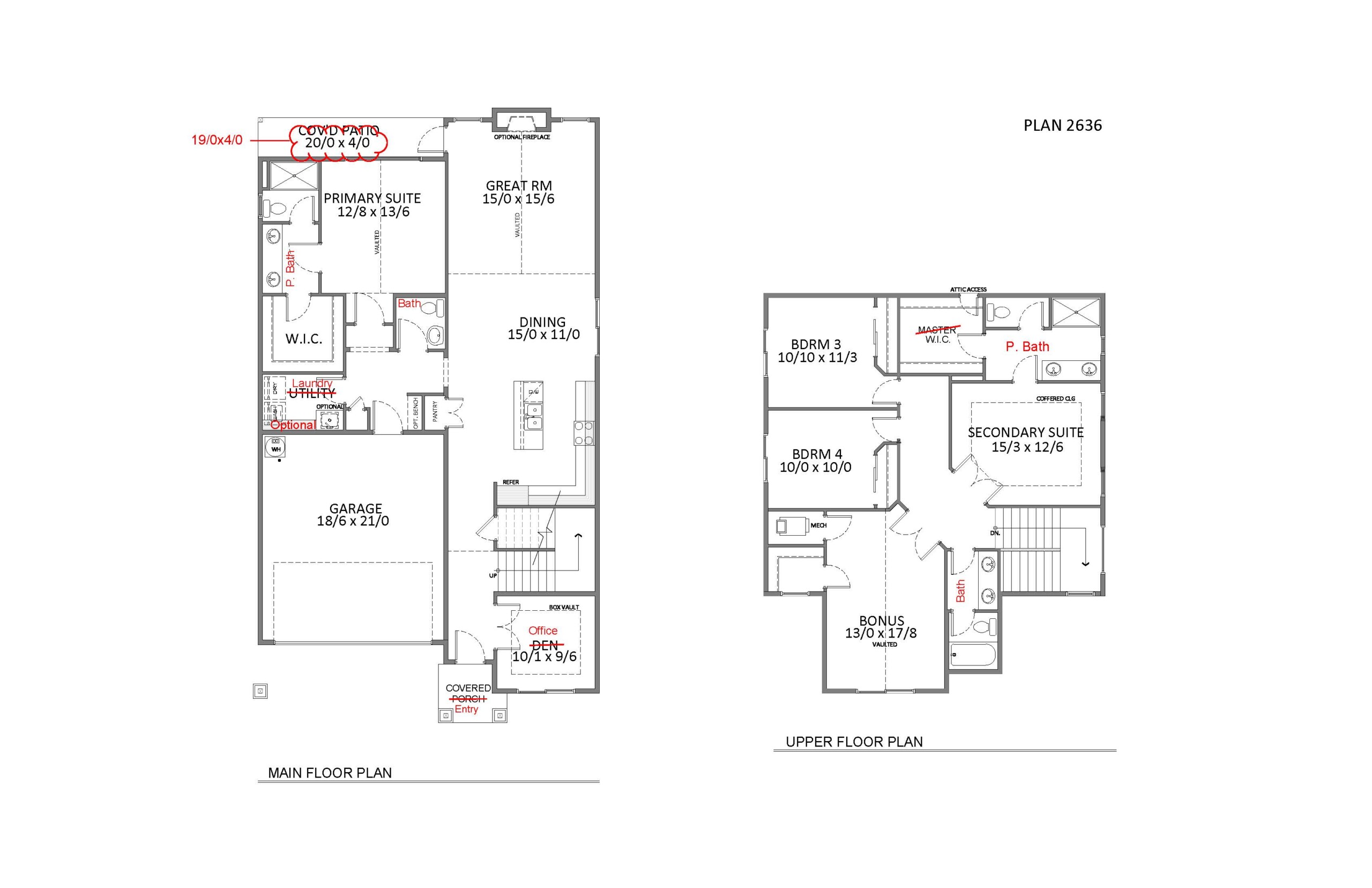 Offering double suites on each floor, perfect for visits from guests, multi-generational living or a roommate situation, space is no issue in this 2,636 square foot floor plan!
