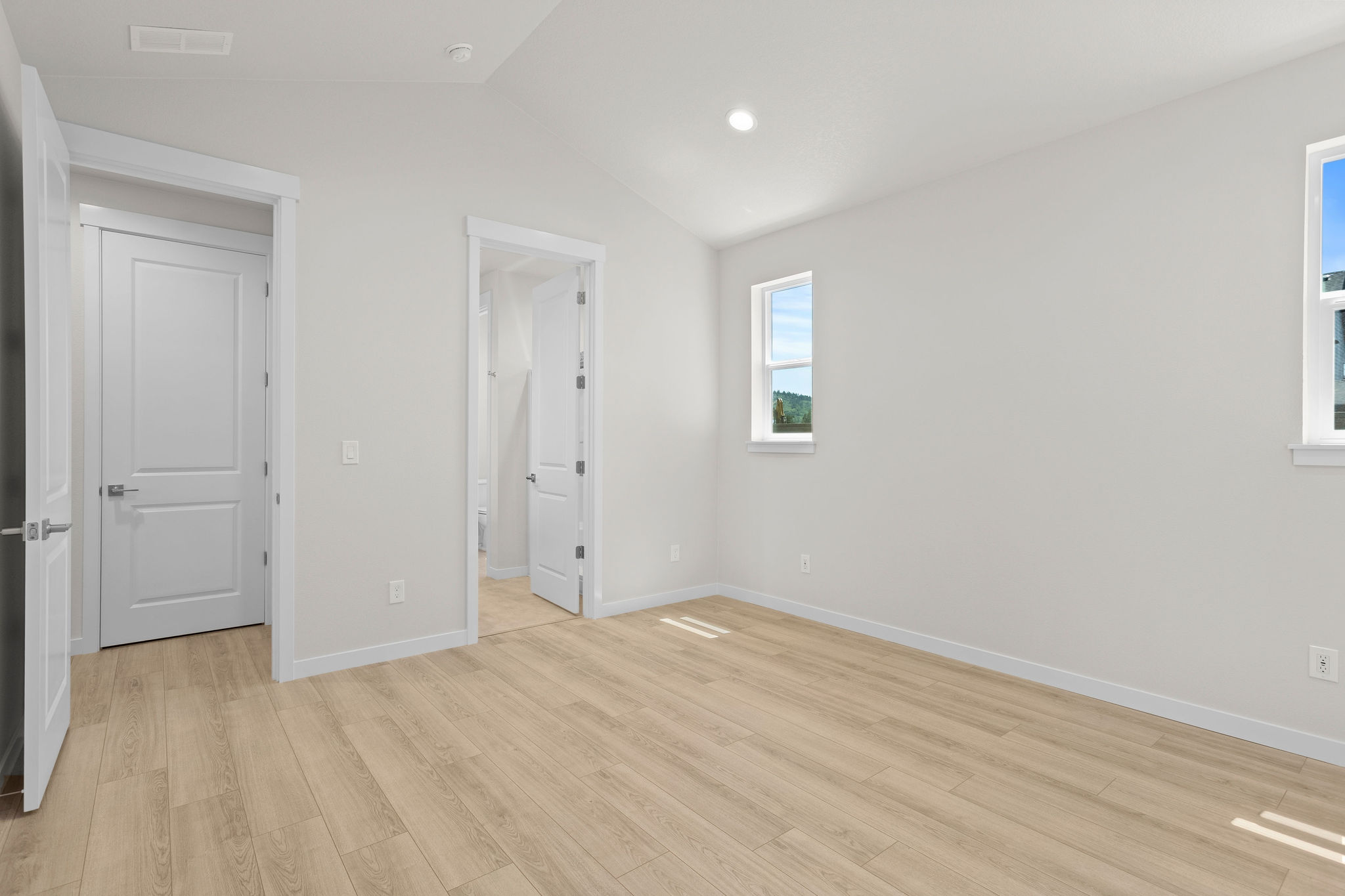 Your private primary suite is a peaceful retreat, featuring vaulted ceilings, a walk-in closet, and a bright, airy bathroom with optional upgrades like a tiled shower or barn door entry. Add an optional retreat space with large windows, perfect for a cozy reading nook.