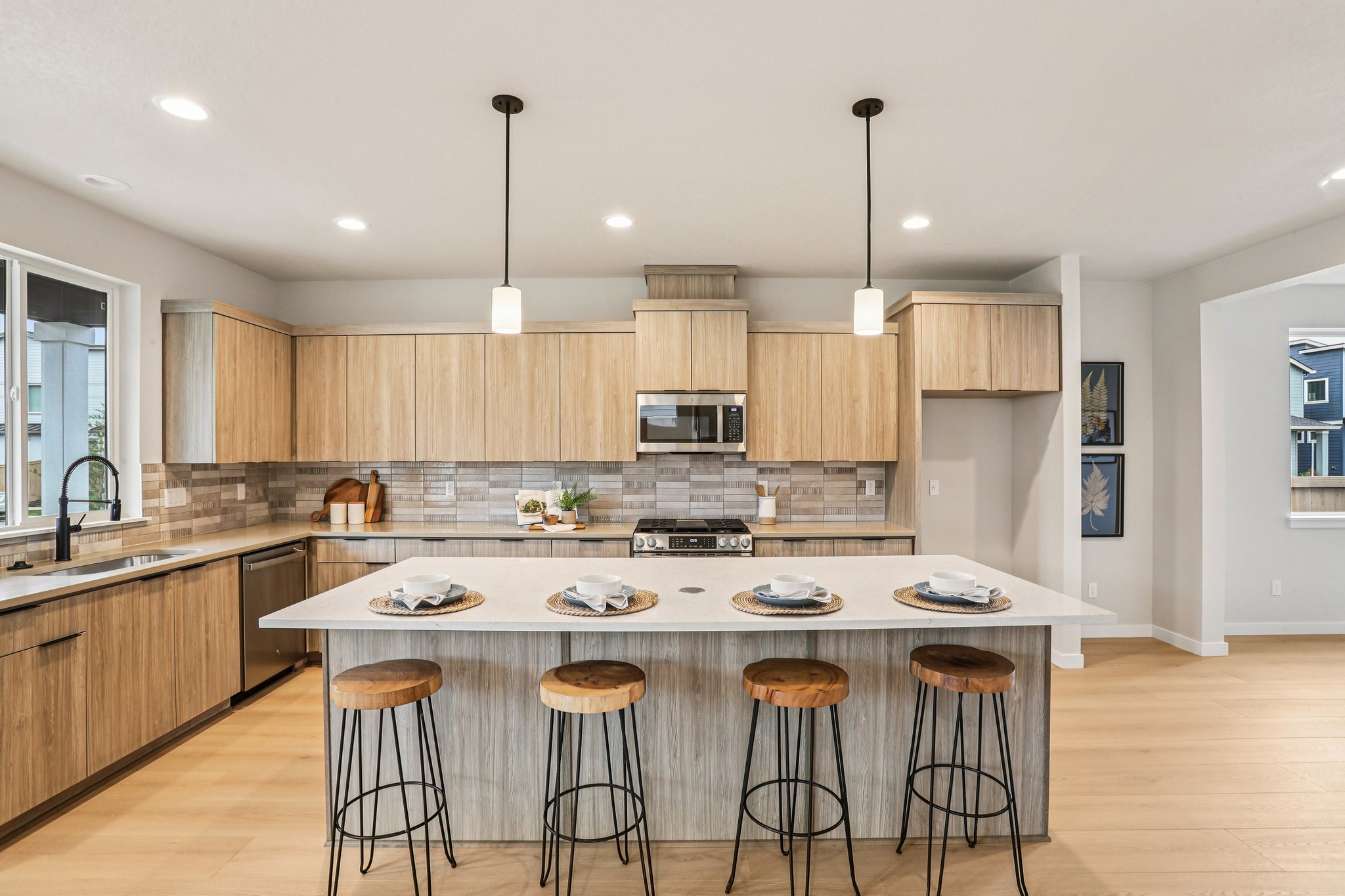 Designed to adapt to your family’s needs as you grow, a flexible space adjacent to the kitchen is ideal for creating a formal dining room or den. A slider to the covered patio invites indoor-outdoor gatherings and windows fill the room with natural light.