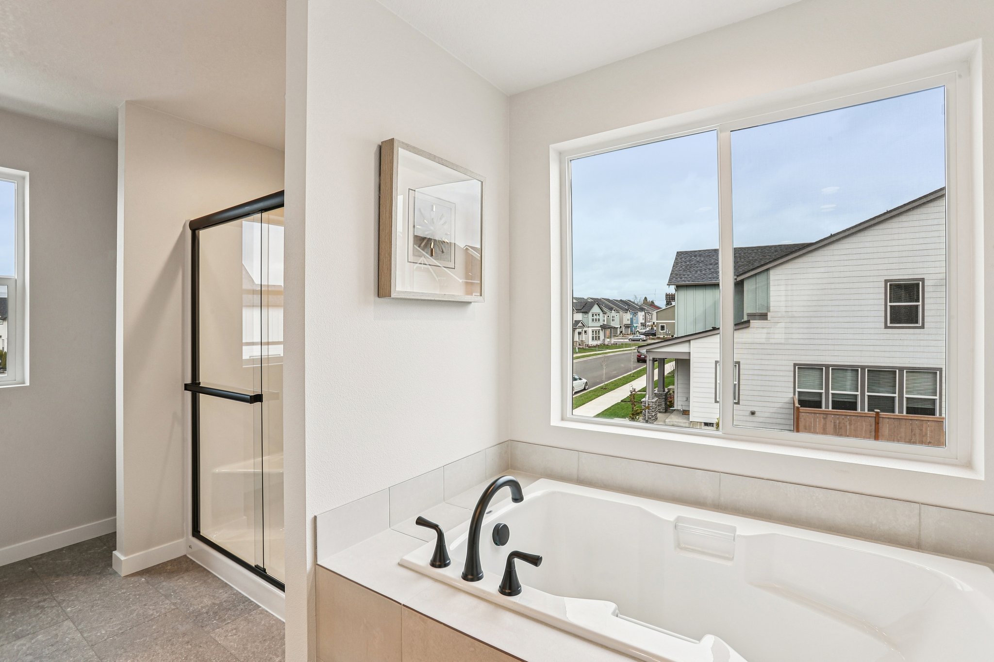 The bathroom includes partitioned walls for privacy, a dual sink that helps make a busy morning routine effortless and separate bath and shower units. Opt to upgrade the shower to a super shower with spa-like features.