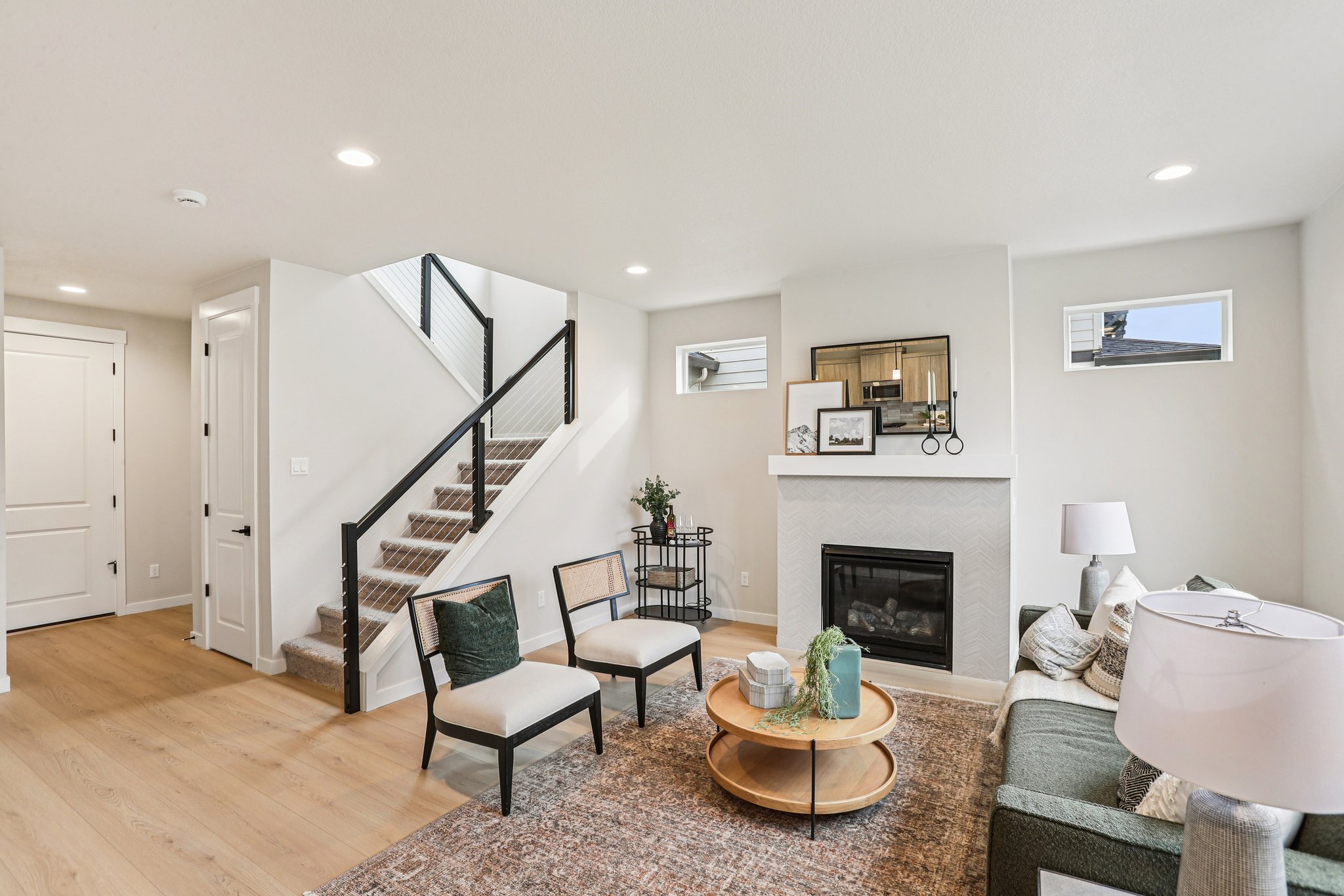 Natural light creates a calm and soothing environment, and there’s plenty of it in this home thanks to the generous number of windows throughout. An open stairway creates continuity between the first and second levels and select rooms on the second floor showcase towering vaulted ceilings. The overall effect is a home that feels fresh, relaxing and awash in light.