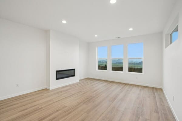 Entering through the front of this home, you’re welcomed by a covered patio. This entryway helps set the tone for the rest of the house. Beyond the front door, you enter the foyer. Filled with natural light thanks to thoughtfully placed windows, this transitional area beckons you into the spacious and open living area that lies just ahead.