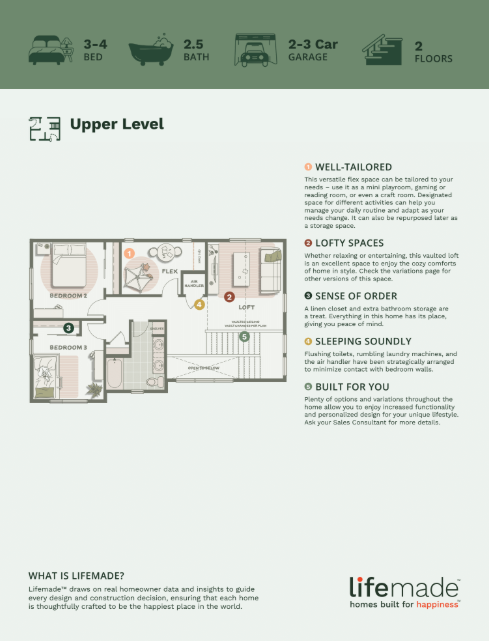 A flex space on the main floor offers the perfect spot for working from home, creative projects, or quiet study time. Upstairs, a versatile loft serves as an additional gathering area, while a secondary flex room can be adapted for play, fitness, or extra storage—helping your home grow with you.